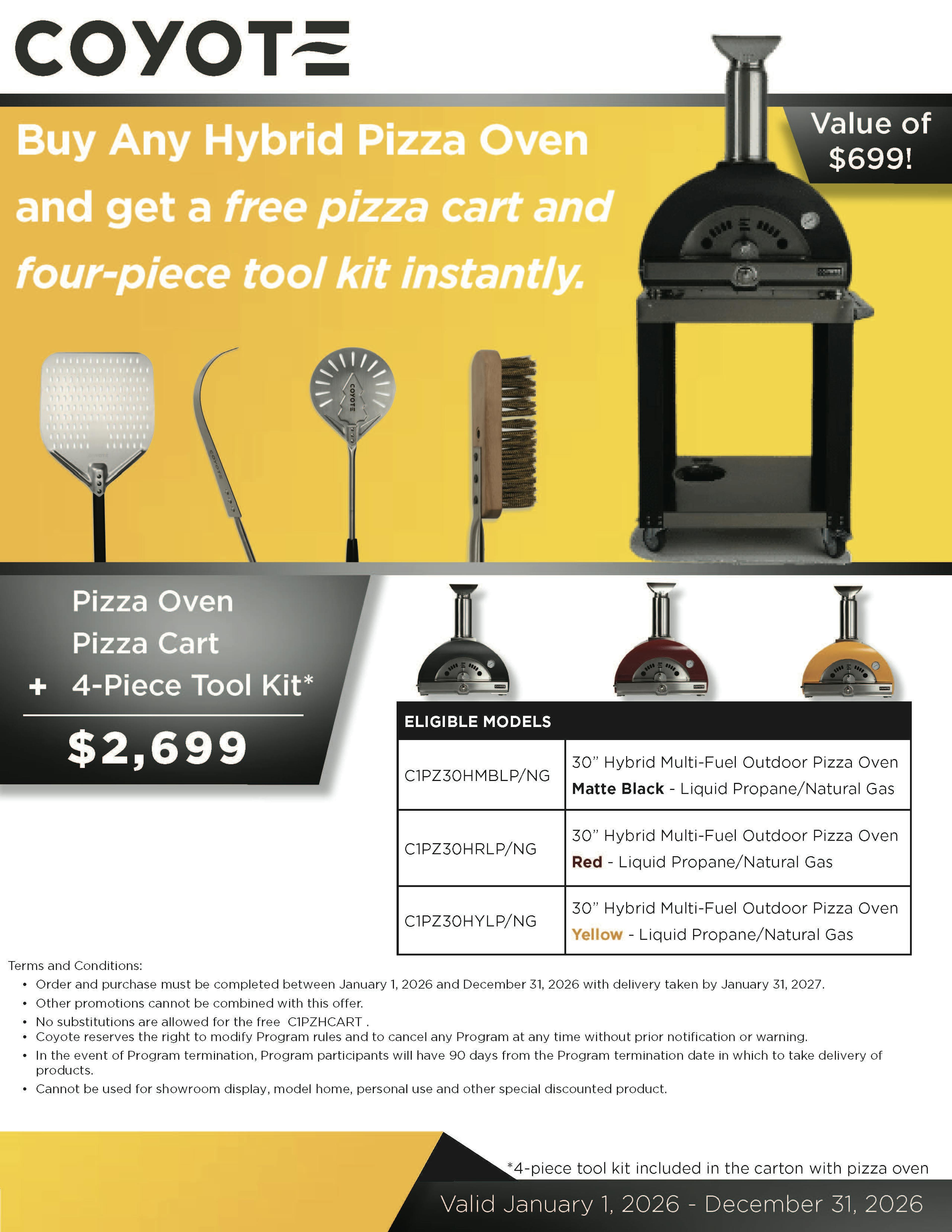 Free Pizza Cart + Tool Kit · Jan 1–Dec 31, 2026
